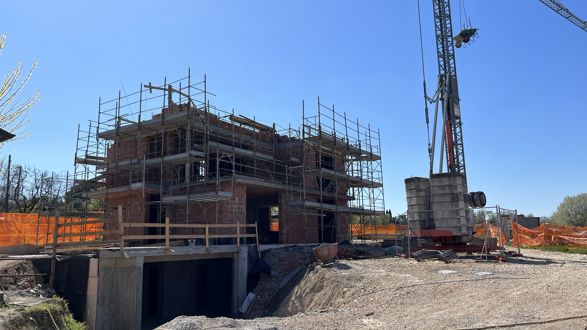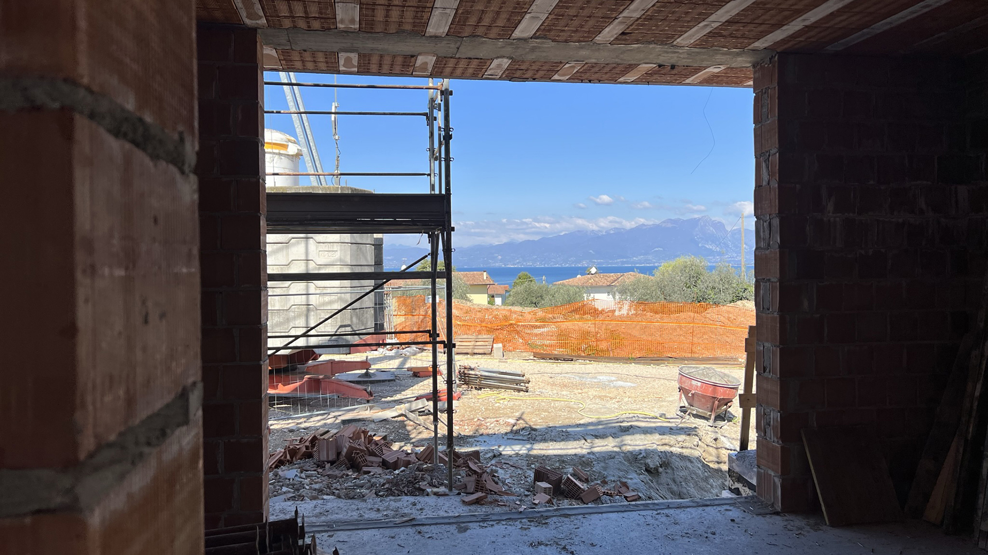 Costruzione di edificio in muratura di laterizio armato con vista sul lago di Garda.