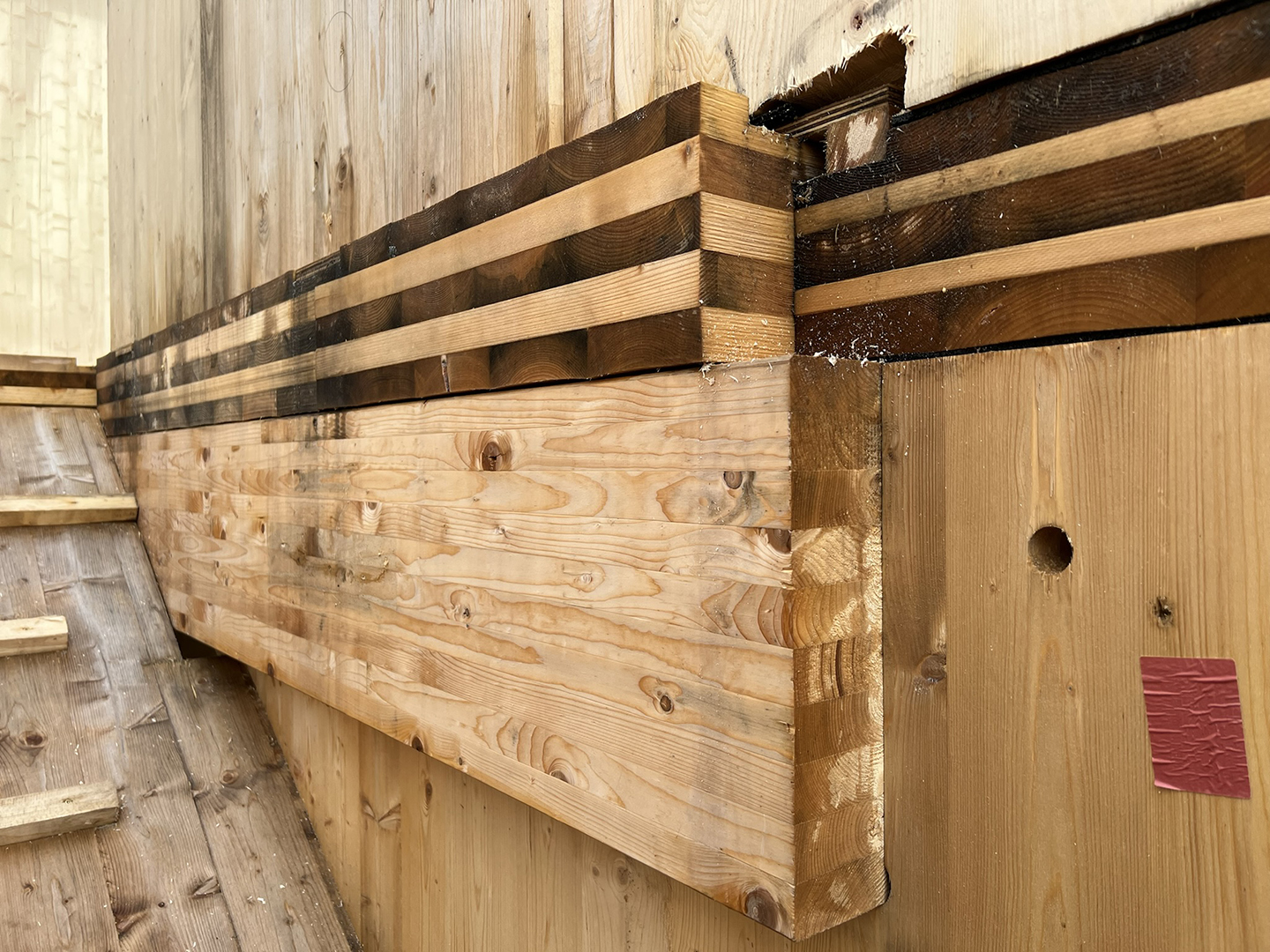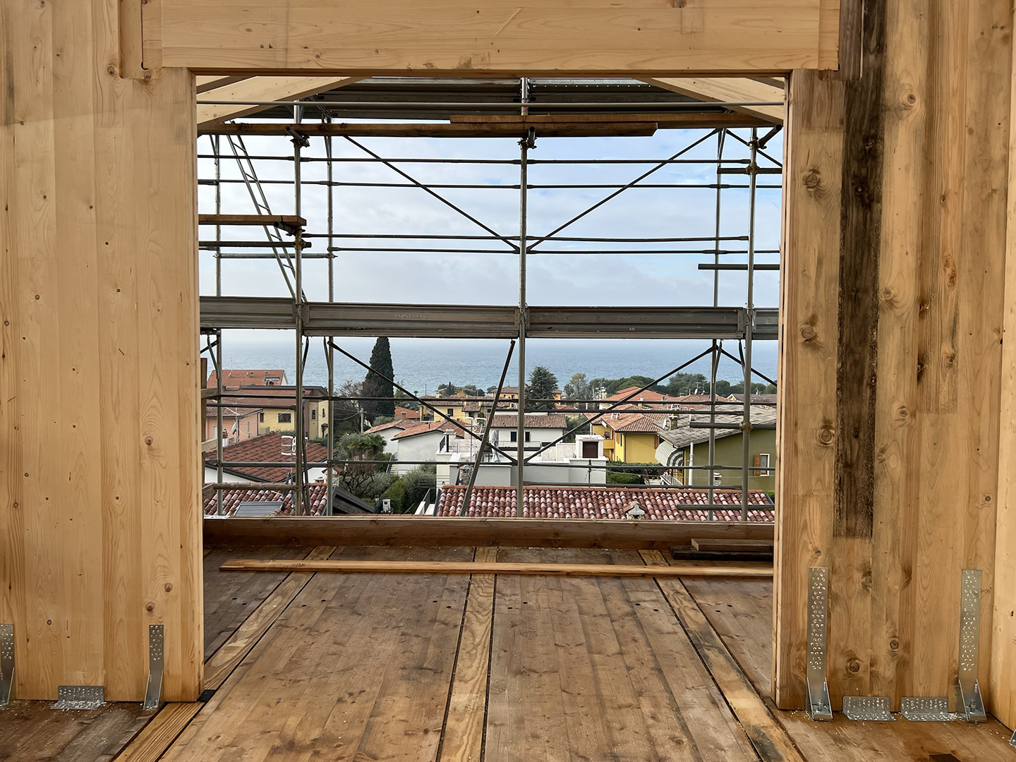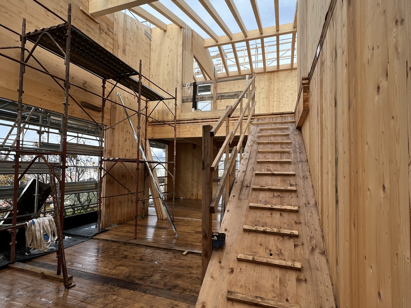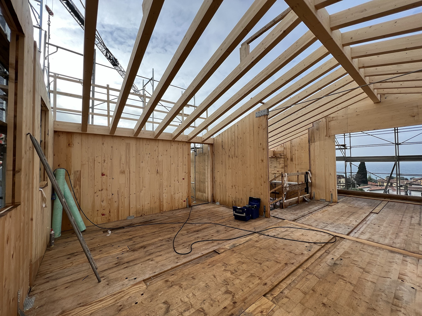 Costruzione di struttura portante in legno XLAM di un edificio residenziale.
