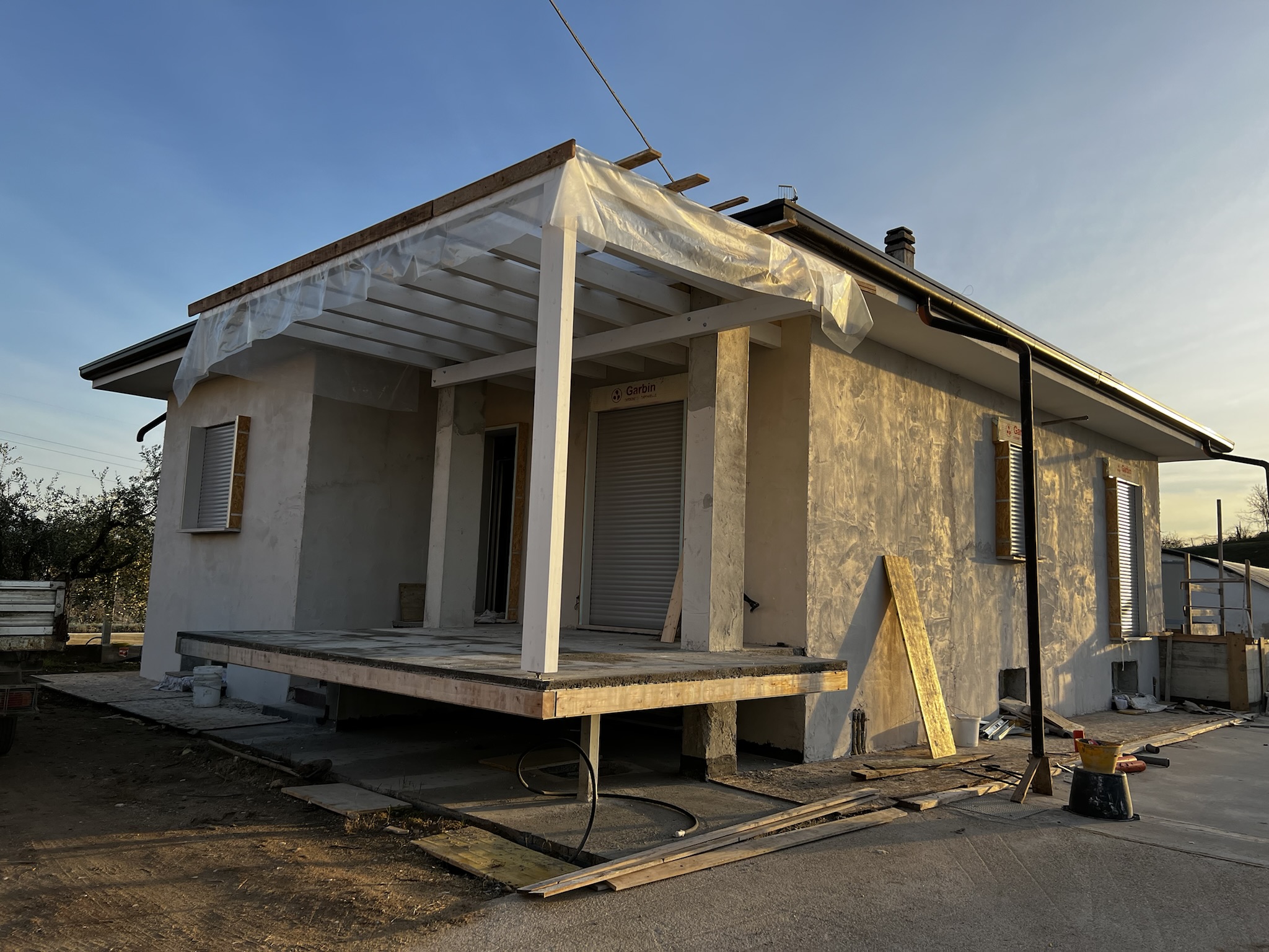 Ristrutturazione con rinforzo delle pareti tramite rete in fibra di basalto e ampliamento terrazza.