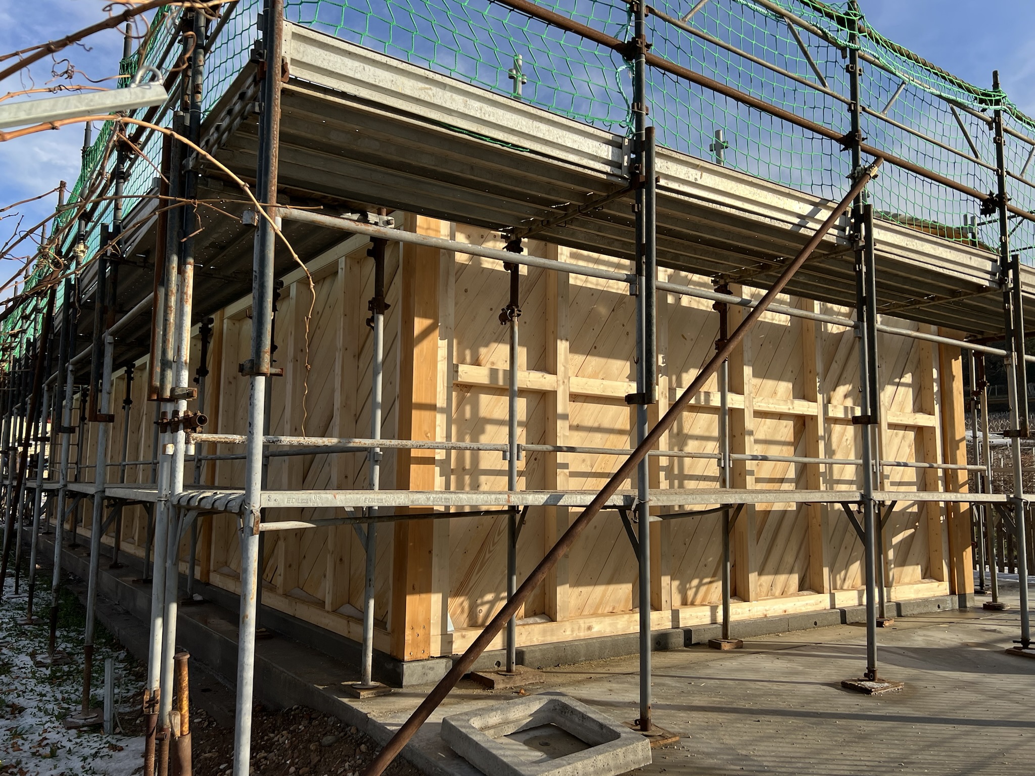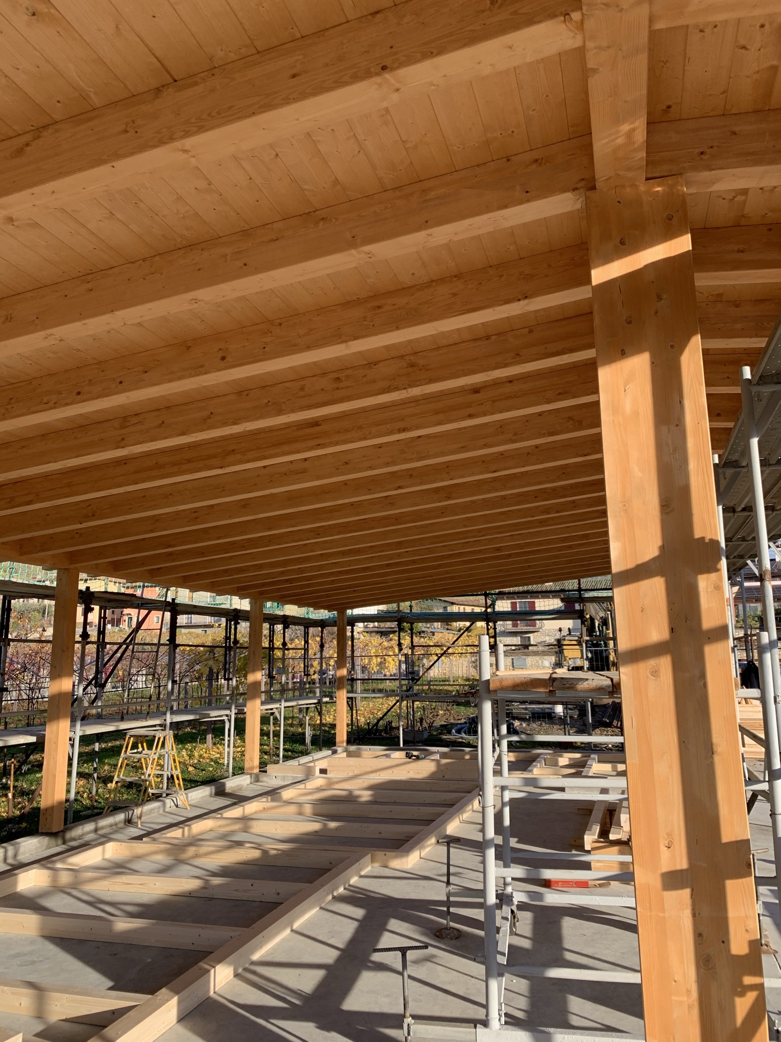 Costruzione di struttura portante a telaio in legno di un ricovero attrezzi.
